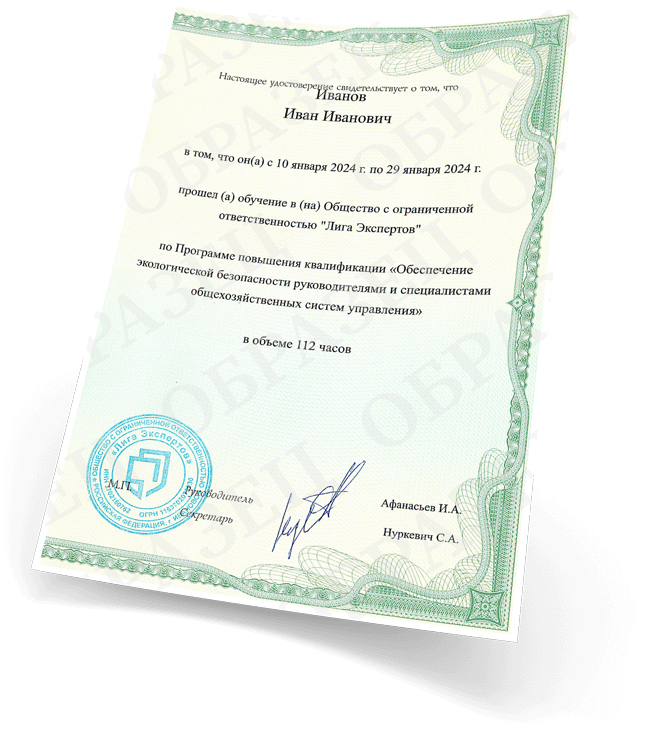 Важно, руководители организаций и специалисты, ответственные за принятие решений при осуществлении хозяйственной и иной деятельности, оказывающей или способной оказать негативное воздействие на окружающую среду, должны пройти подготовку в области охраны окружающей среды и экологической безопасности согласно статье 73 Федерального закона от 10.01.2002 № 7-ФЗ "Об охране окружающей среды".